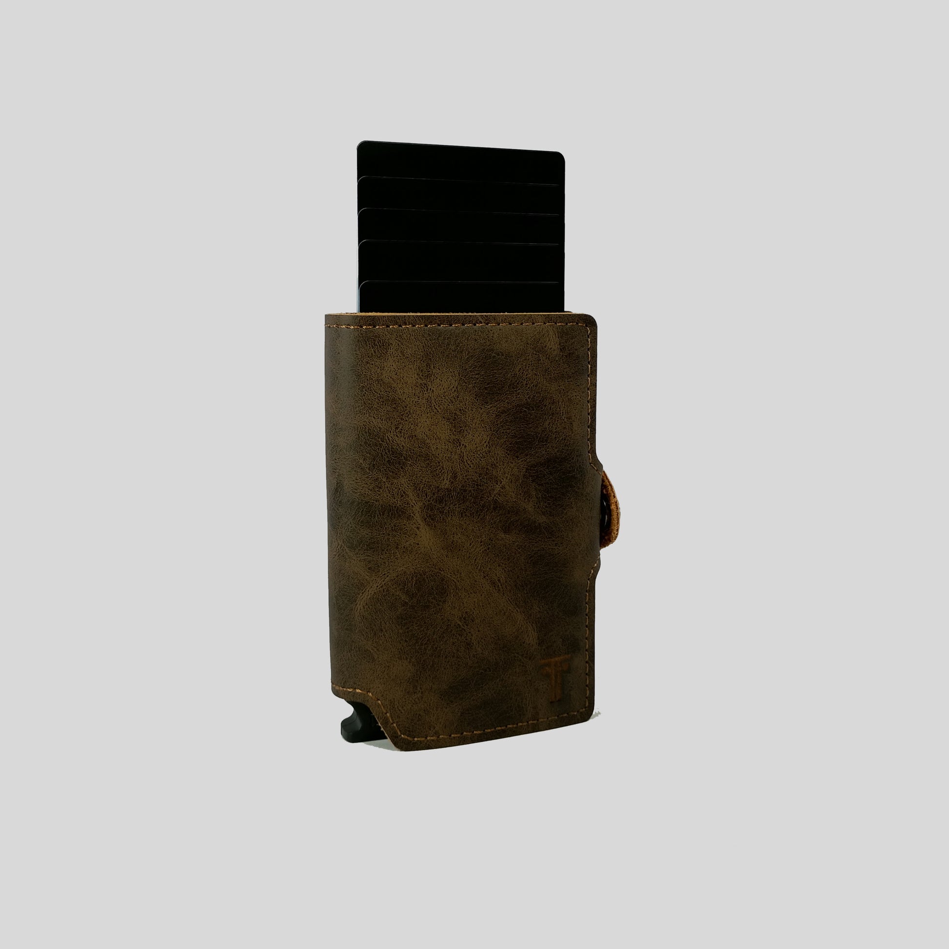 Billetera | Trifold Pop-up | Cuero Café | Anticlonación RFID
