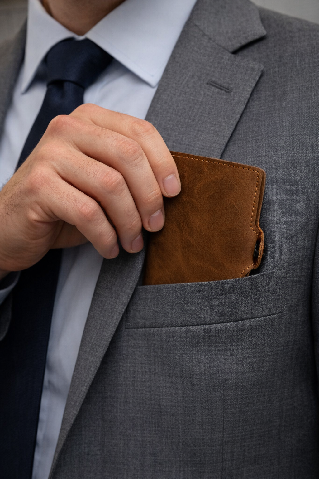 Compacta y elegante : Con solo 10 cm, 7 cm y 1,5 cm de grosor, cabe en cualquier bolsillo sin abultar y proyecta una imagen moderna y profesional. 🧳